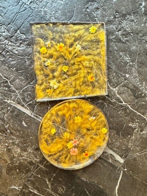 Add a touch of sparkle to your space with our handcrafted resin coasters! Available in multiple sizes and shapes, each piece is custom made and completely unique. Choose your colors and design to create something perfectly suited to your style. Functional, beautiful, and made just for you.